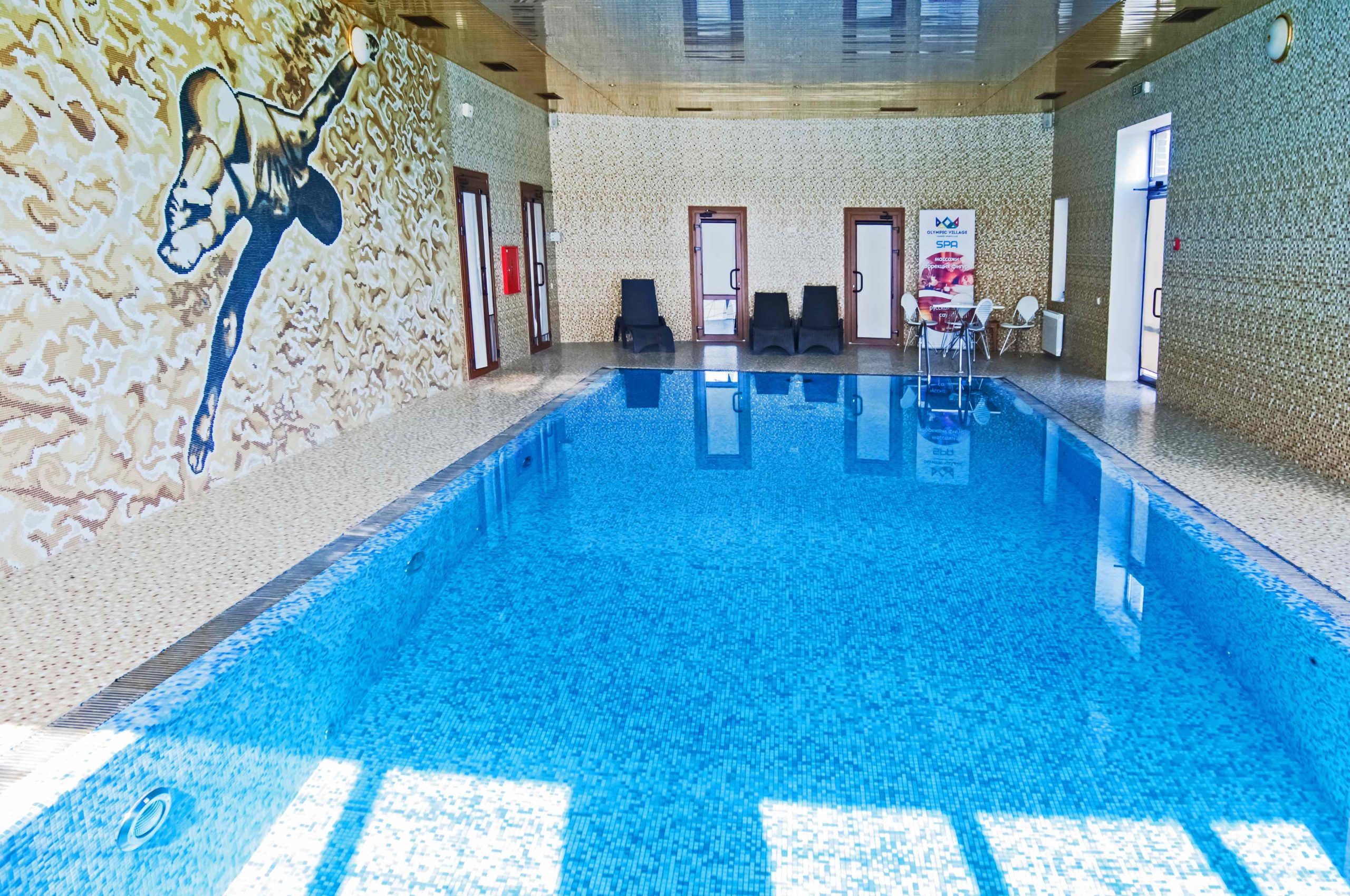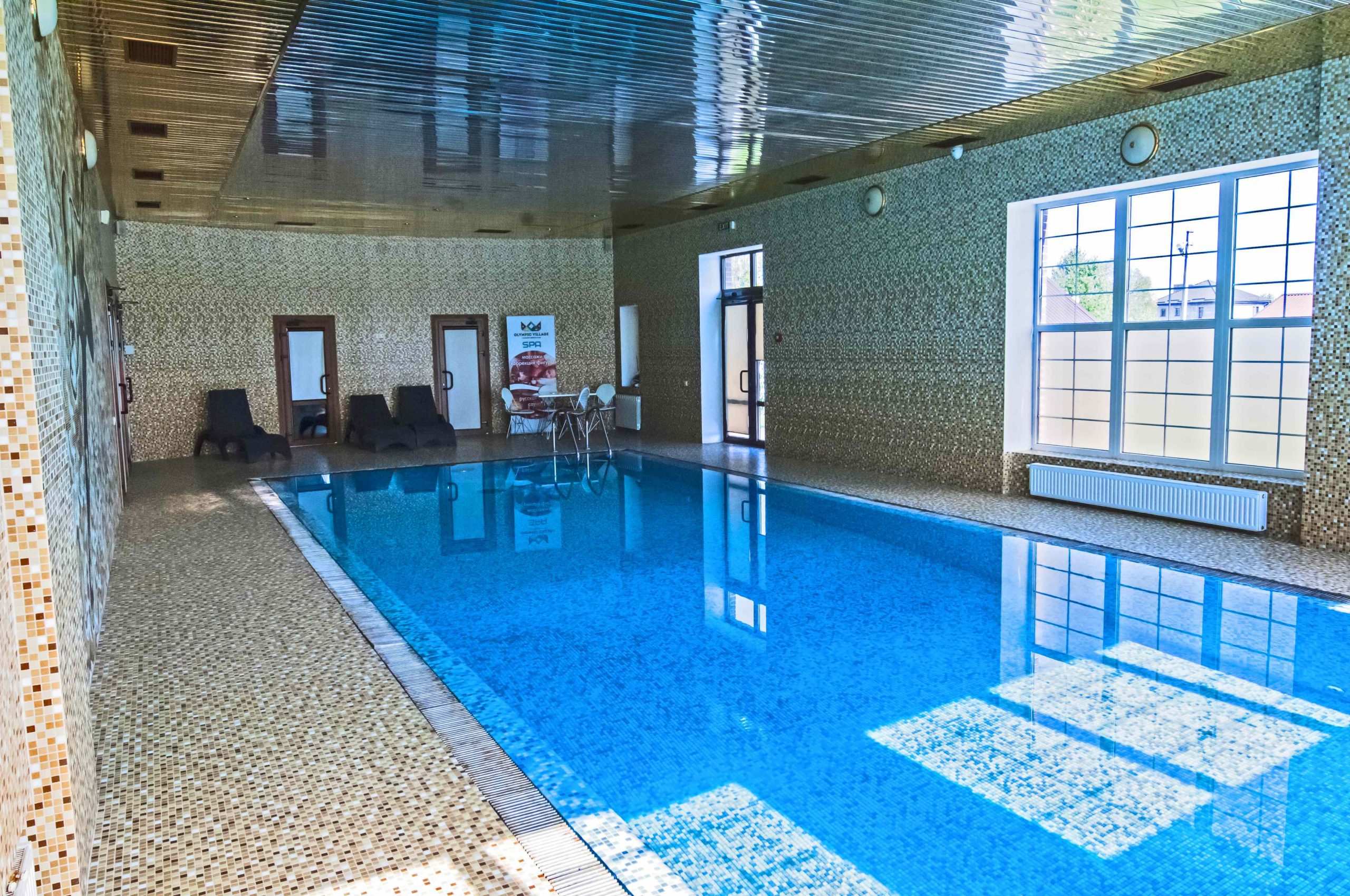 Для зручності гостей поруч із басейном облаштована сучасна роздягальня, де можна комфортно підготуватися до відпочинку. Після плавання ви можете відвідати зону СПА, яка допоможе розслабитися, зняти напругу та відновити енергію.